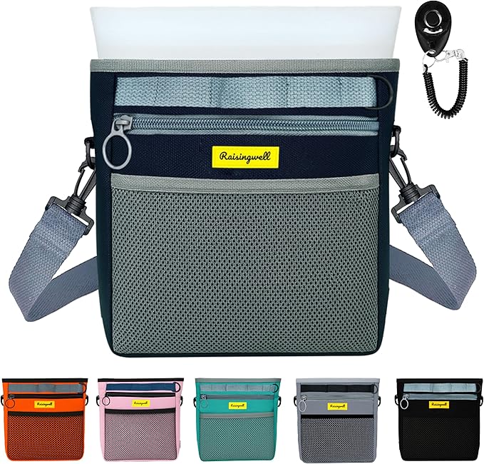 - 5.Durable Tech Material: Raisingwell's dog treat training pouch is made from durable, washable, and non-toxic fabric. Notably, its waterproof lining solves the problem of difficult-to-clean interiors of training bags, making it a great choice for your dog treat bag or dog treat fanny pack.