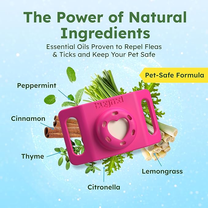 BugMD Paw Guardian Flea and Tick Prevention Pendant for Dogs & Cats with AirTag Holder | Plant-Powered Flea & Tick Control for Dog Collars & Cat Harnesses | Cat and Dog Tag with Air Tag Holder - Pink