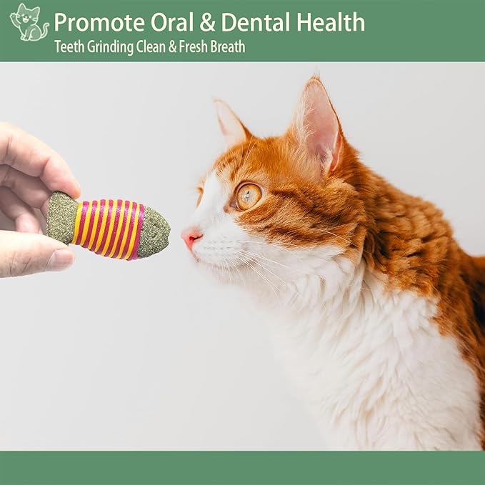 - Promote Oral & Dental Health: These chew toys are designed to naturally clean and grind your cat’s teeth, effectively reducing plaque and tartar buildup. They boost appetite, help eliminate hairballs and other digestive impurities, keeping your cat healthy and happy.