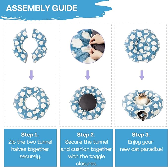 - 🍩 DONUT CAT TUNNEL DESIGN FOR MAXIMUM COMFORT – The plush, round Donut Cat Tunnel layout offers a secure, snuggly haven that doubles as a resting spot for small pets like kittens, rabbits, or puppies.
