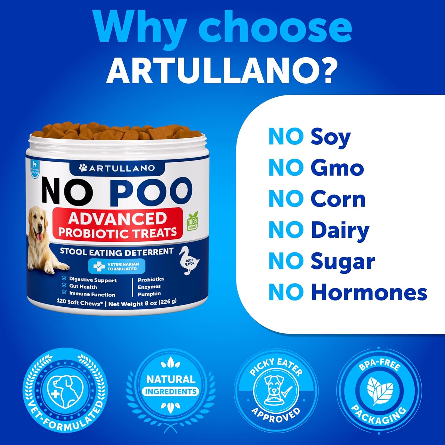 - Suitable for All Dogs: our no poo chews for dogs cater to all breeds, sizes, and ages. We care about your pet's health, offering a comprehensive dog poop eating deterrent that supports every furry friend in maintaining a clean lifestyle.