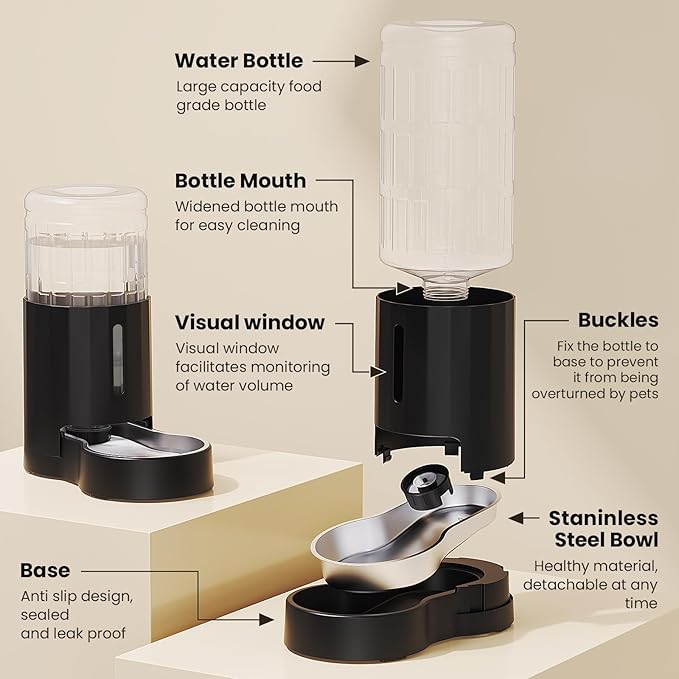 - [Hands-Free Automatic Refilling]:Gravity does the work! Water flows automatically as your pet drinks – no plugs or cords needed. The see-through reservoir lets you monitor water levels at a glance.