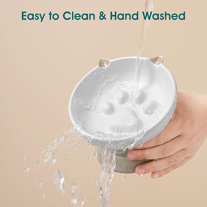 - Raised Cat Paw Design: Prolong the mealtime to 5 X. Prevent overeating, featuring a unique cat paw design, reducing bloating and obesity risks. The ceramic elevated cat bowl encourages paced eating while satisfies cat’s natural foraging instinct, healthier for cats.