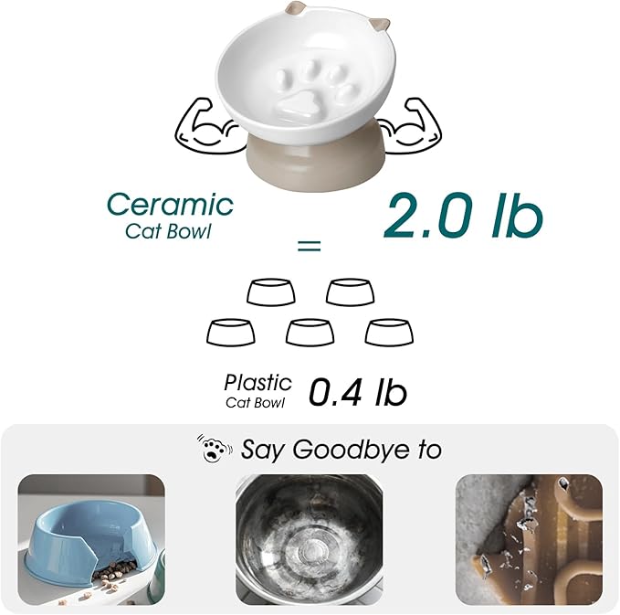 - Premium Ceramic: Safe & durable. Made from food-grade ceramic, this elevated cat food bowl avoids harmful chemicals found in plastic alternatives. lead free and cadmium free, non-toxic and harmless, sturdy and strong enough to prevent breakage from pet bites.