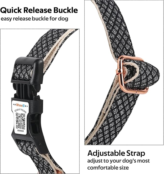 - Cute Design : WhoseID Dog Collar is both stylish and adorable with sparkling outer webbing and cotton inner webbing stitched together. Complete with gold metal hardware, this elegant dog collar is a ideal choice for your puppy