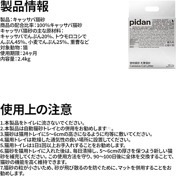 - 【Plant-based Natural Materials】pidan's Cassava Series Cat Litter is made from 100% natural ingredients, including cassava starch, corn starch, and pea fiber. As a renewable plant-based resource, it is environmentally friendly and contains no chemical additives, ensuring a safe and sustainable choice for your cat and the planet.