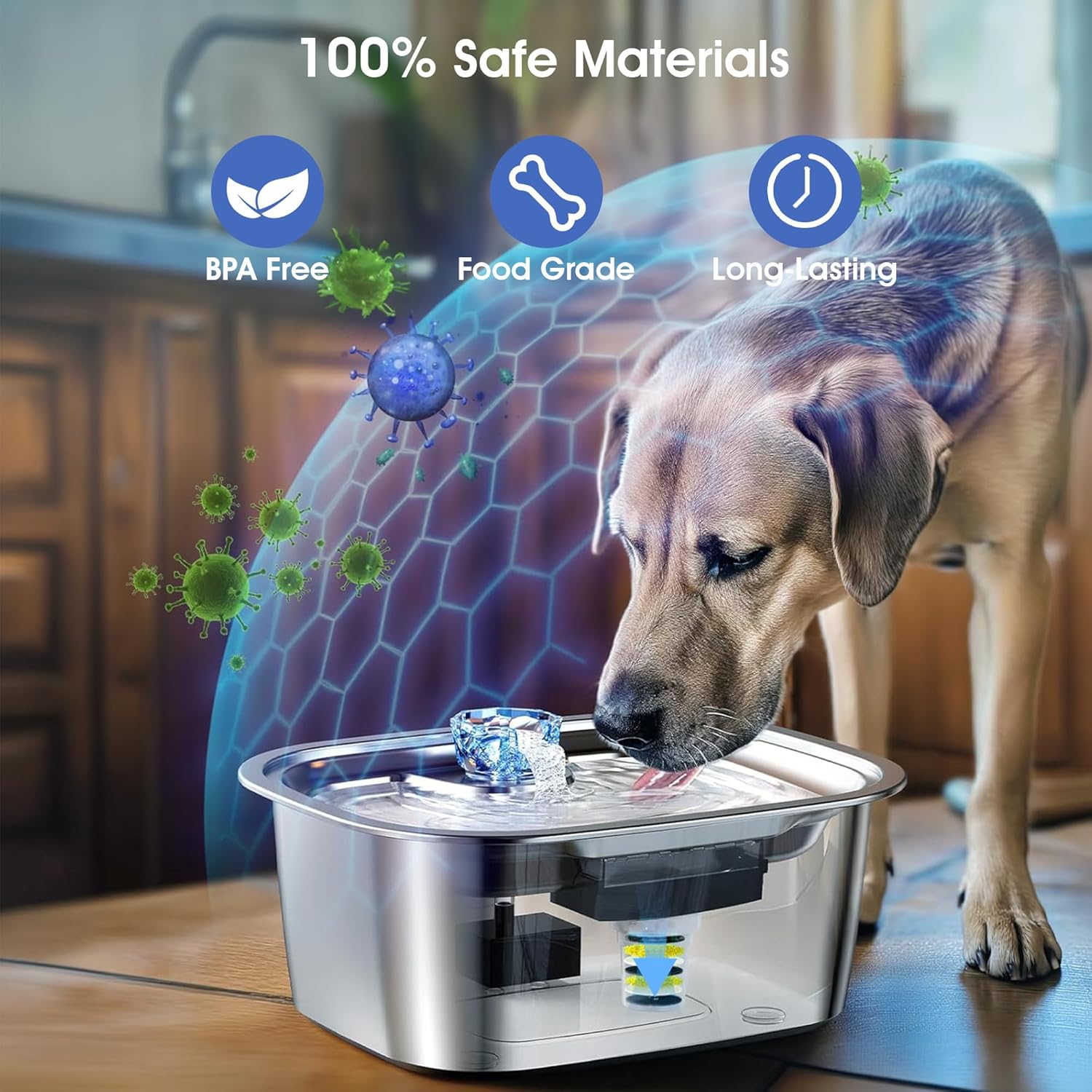 - Ensure Clean, Fresh Water for Your Pet: The high-density activated carbon and ion exchange resin dog water filter provide multi-stage filtration, effectively removing hair and heavy metals to keep water pure. It also boosts oxygen levels, so your pet can stay hydrated with fresh water all day, promoting their overall health