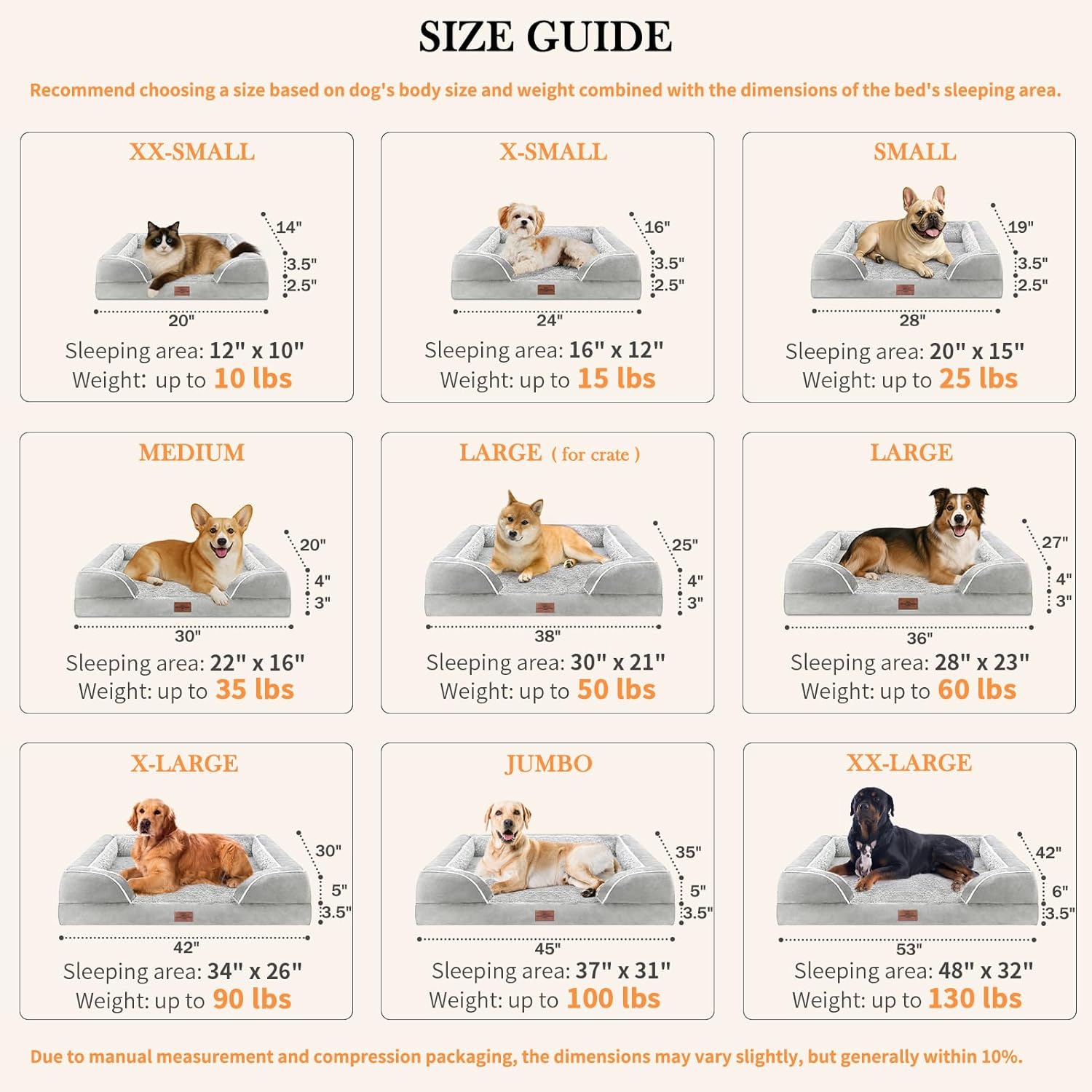 Comfort Expression Small Dog Beds Waterproof Cat Beds Orthopedic Foam Sofa Beds for Small Dogs Comfy Pet Bed with Washable Removable Cover & Non-Slip Bottom(XX-Small,Grey White)