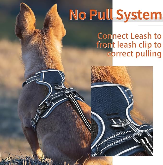 HEELE Dog Harness for Medium Dogs No Pull Dog Vest Harness with Soft Padded Handle Reflective for Outdoor Training, Royal Blue, M