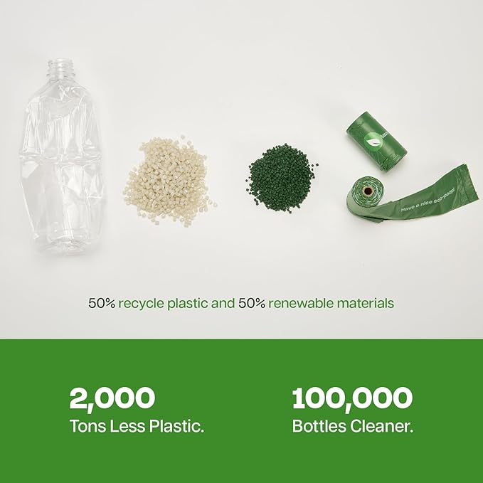 - Made from Corn Starch & Rececly Material: To craft the beat produts for a sustainable liftstyle, our poop bags are made from 50% certified renewable resourses and 50% constarch, just do our best to create a poop bags which is earth-friendly.