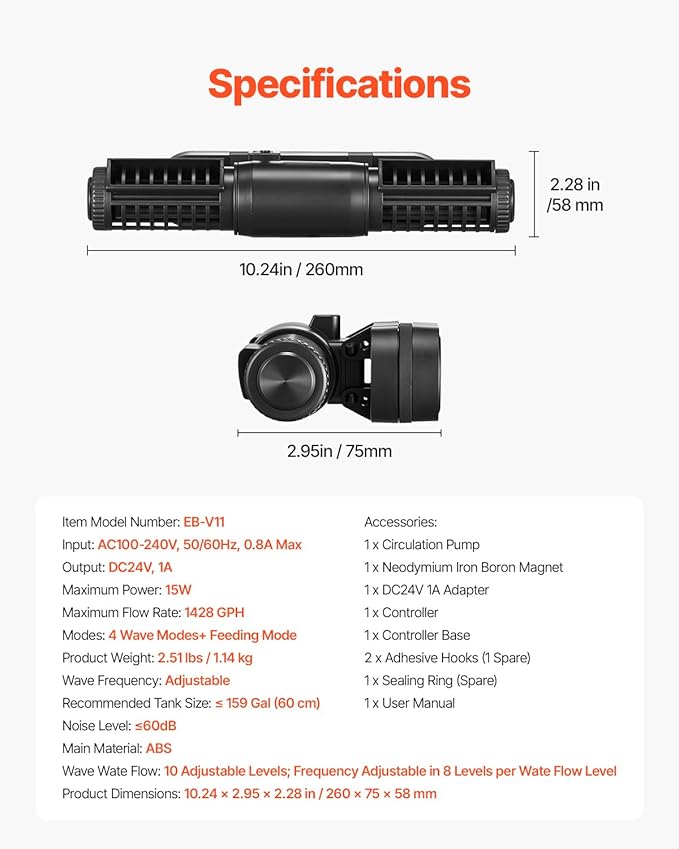 - Multi-Functional Controller: Adjust wave frequency and water flow rate with ease. The multifunctional controller includes a feed mode and key lock for the remote, providing complete control over your tank’s environment