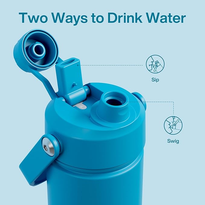 - Sip or Chug, Your Choice: Straw lid for sipping on the go and twist cap for deep hydration, all in one ENCOOL water bottle
