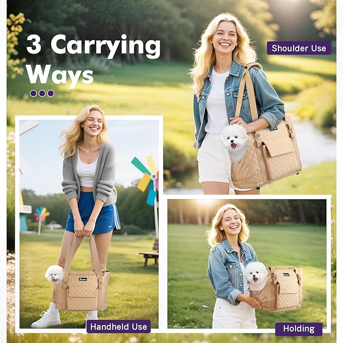 Pawaboo Dog Purse Carrier for Small Dogs with Pocket, Lightweight Dogs and Puppies Tote Bag Carrier, Dog Carriers Soft Sided for Puppy Cat Rabbit, Shopping Travel Puppy Carriers Under 11 LBS, Khaki