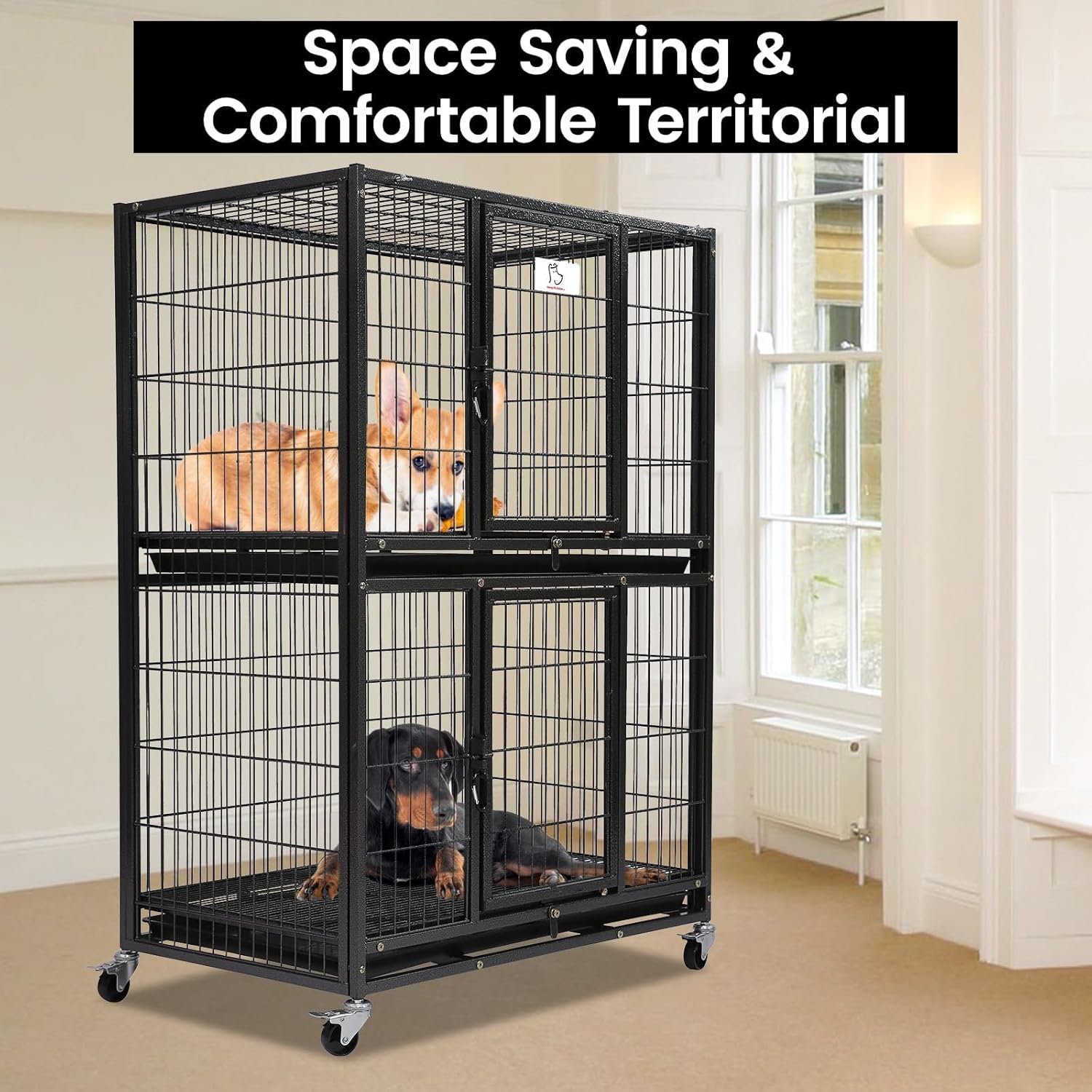 - Easy to Move Around: Equipped with Four x 360° rotatable and lockable casters, this heavy duty dog crate offers unparalleled ease of movement. Easily reposition it anywhere in your home without sacrificing stability, and stay stable where you want it to be placed, making it perfect for cleaning and rearranging spaces