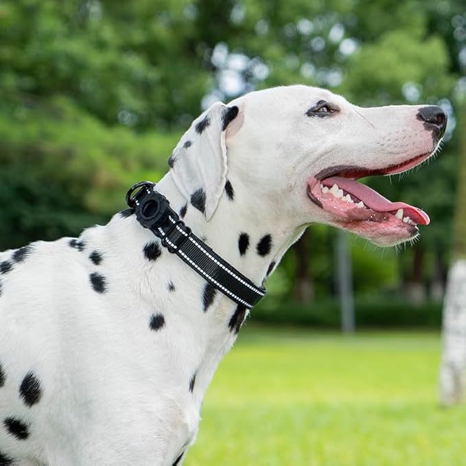 JSXD AirTag Dog Collar, Night Reflective Nylon Dog Collar for Small Medium Large Dogs,Lockable Quick Release Buckle,Padded Breathable Pet Collar with AirTag Holder (Black, Small)