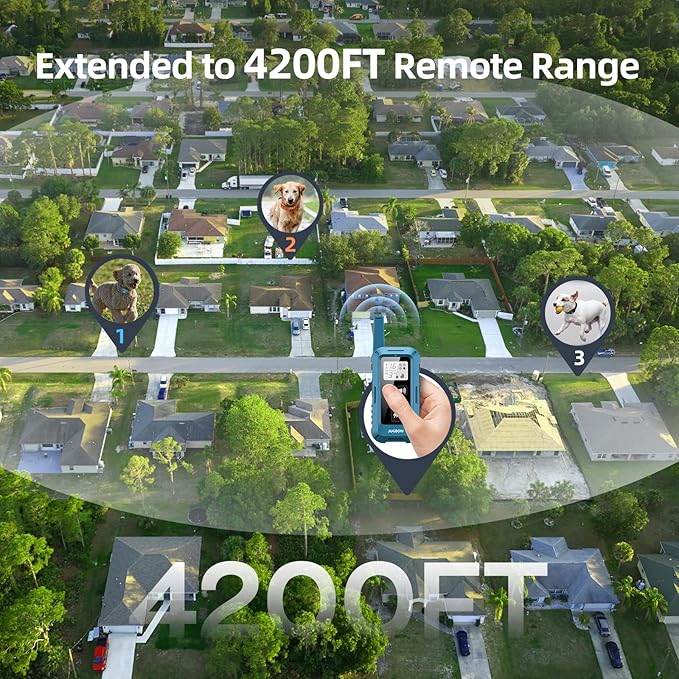 - [Extended 4200FT Range & 4 Channel] The Jugbow E-Collar delivers an impressive 4,200 ft range, giving you reliable training control anywhere. Its 4-channel system lets you train up to 4 dogs at once—indoors or outdoors. Plus, the smart remote remembers your settings, so you never have to reset when switching between dogs!