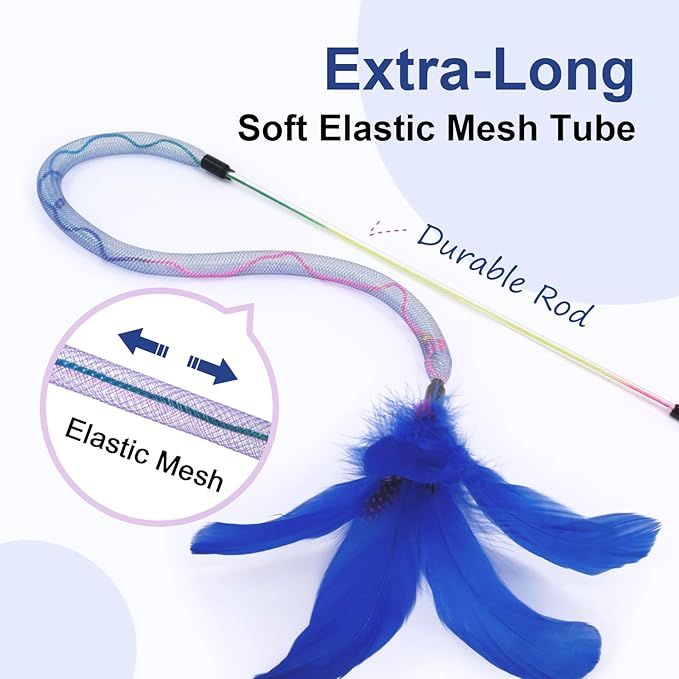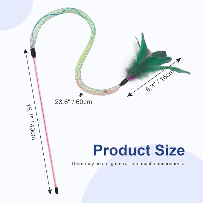 - Safe Material & Built for Wild Play - Our rainbow cat toys is tough yet gentle, our non-toxic nylon mesh and natural feather construction stands up to claws and bites, while the lightweight wand lets you guide the action effortlessly. No sharp edges-just happy, safe play!