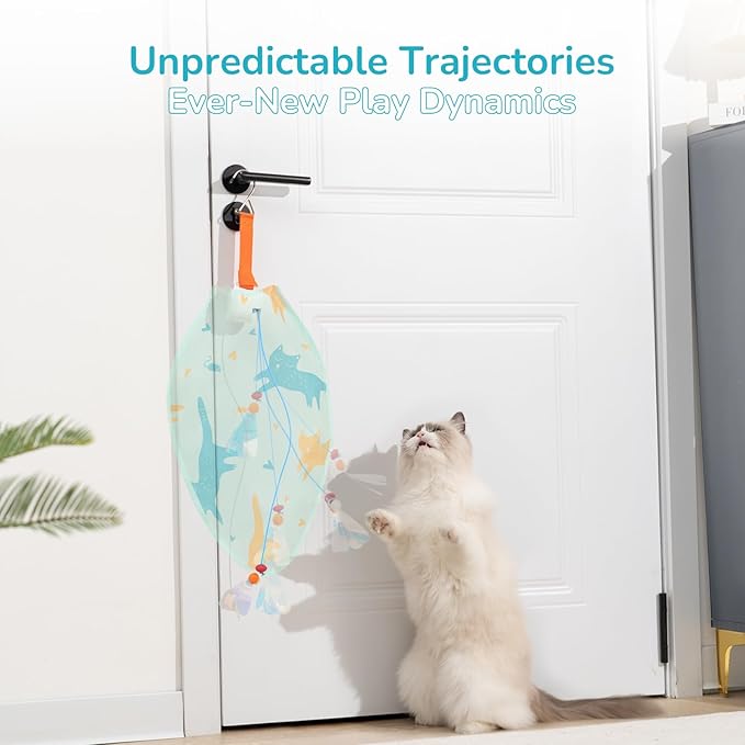 - Door-Hanger Delight: Easily attach it to a door handle! This unique position creates a fresh, exciting challenge that strongly appeals to your cat's curiosity, offering a novel way to play with interactive cat toys for indoor cats.