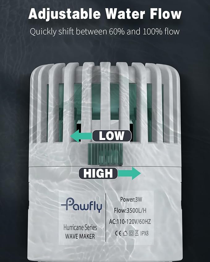 - Quiet & Adjustable: Equipped with an optimized motor, it runs silently under 35 dB, keeping your tank calm while promoting the well-being of your aquatic pets. And the handy sliding switch lets you quickly shift between 60% and 100% flow