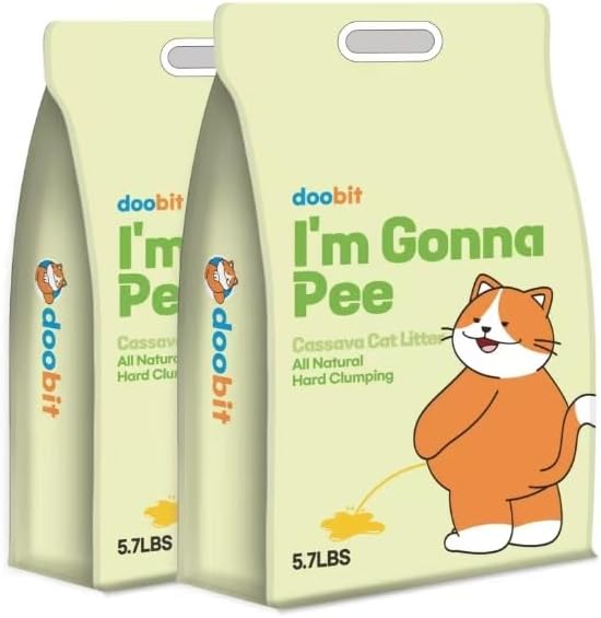 Cassava Cat Litter, Spherical, Non-Stick Super Clumping, No Odor,No Dust,No Mess,100% Natural Ingredient,Plant-Base,Loved by Cats,Safe, Mixable with Clay or Various Cat Litter (5.7lb x 2pack)