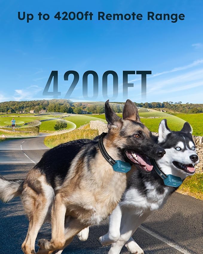 - 【4200FT Range & 2 Channel】The dog training collar covers up to 4200FT allowing the dog to roam farther, making it easy to train your dog indoors or outdoors. With dual-channel, one remote supports 2 receiver collars, and you can train 2 dogs at the same time! Besides, it has a memory function without resetting it.