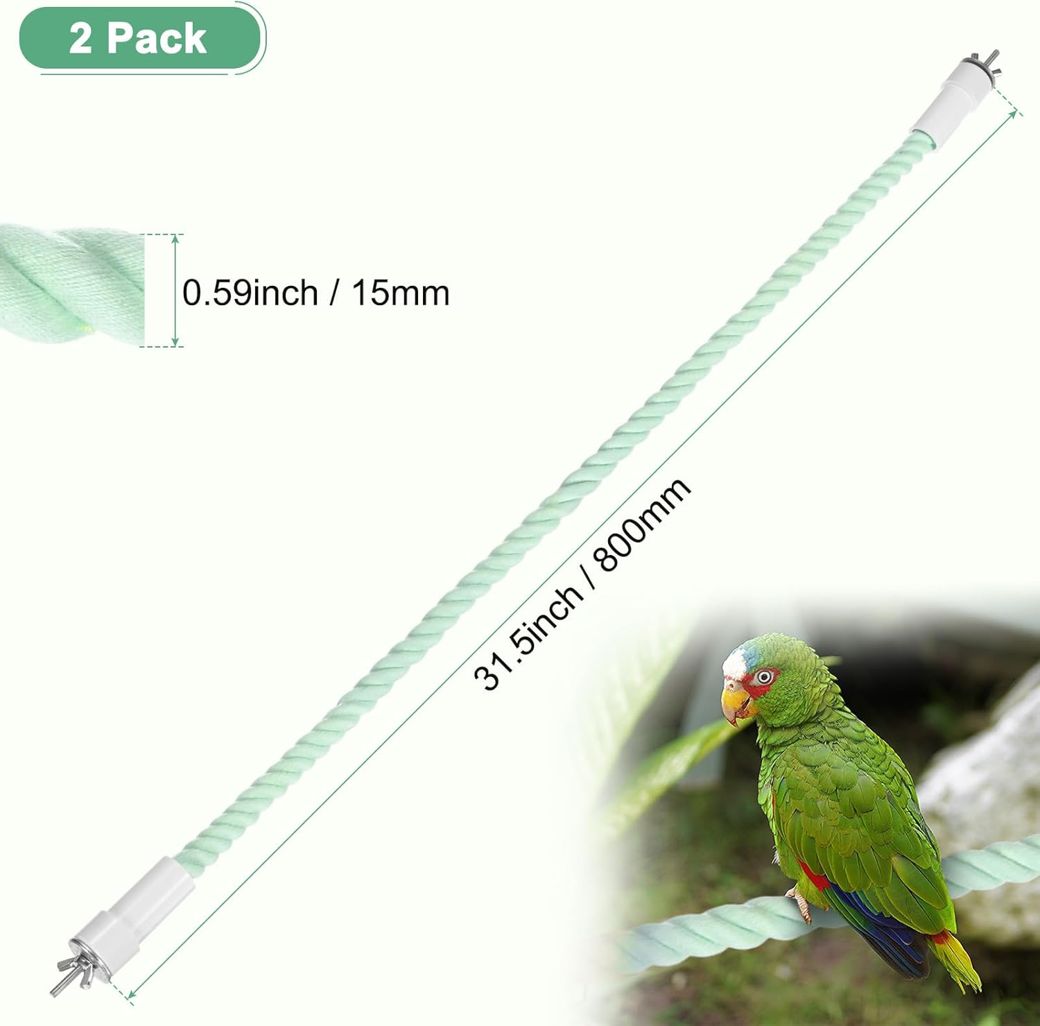 - [Size & Package] - The size of the bird perch rope is 31.5 x 0.59 inch/ 800 x 15mm (L x Dia). The package contains 2 pcs bird perch rope