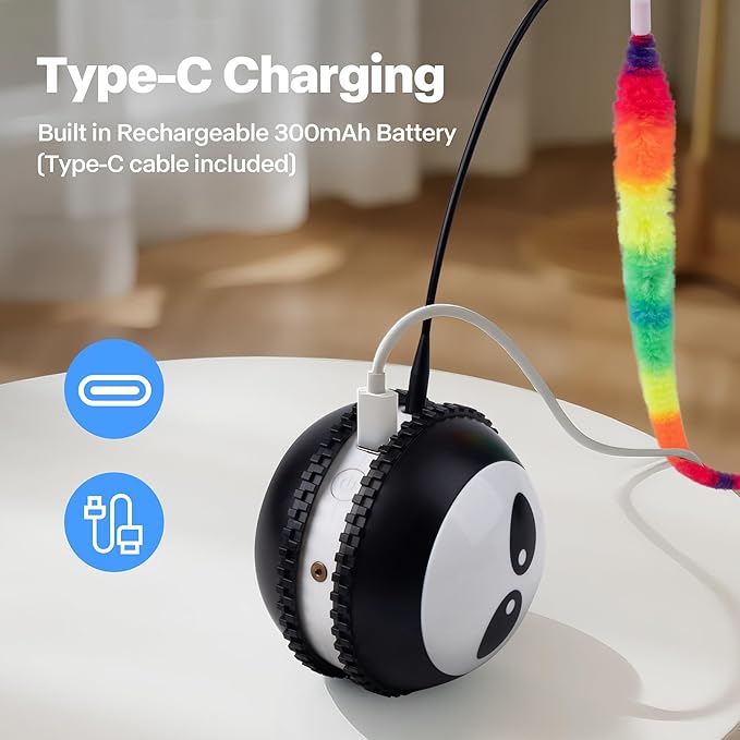 - Long-lasting Rechargeable Cat Toy: With just a quick 1.5 hours charge,this chirping automatic cat ball toy provides up to 4 hours of continuous use.It's also very conveninent to use,enjoy longer playtime with our toy