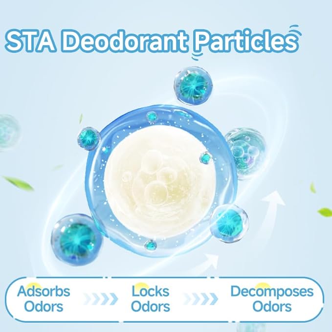 - 【Added Baking Soda】Baking soda (sodium bicarbonate), a weakly alkaline substance, effectively reduces odors by neutralizing acidity, absorbing unpleasant smells, and providing cleansing properties.