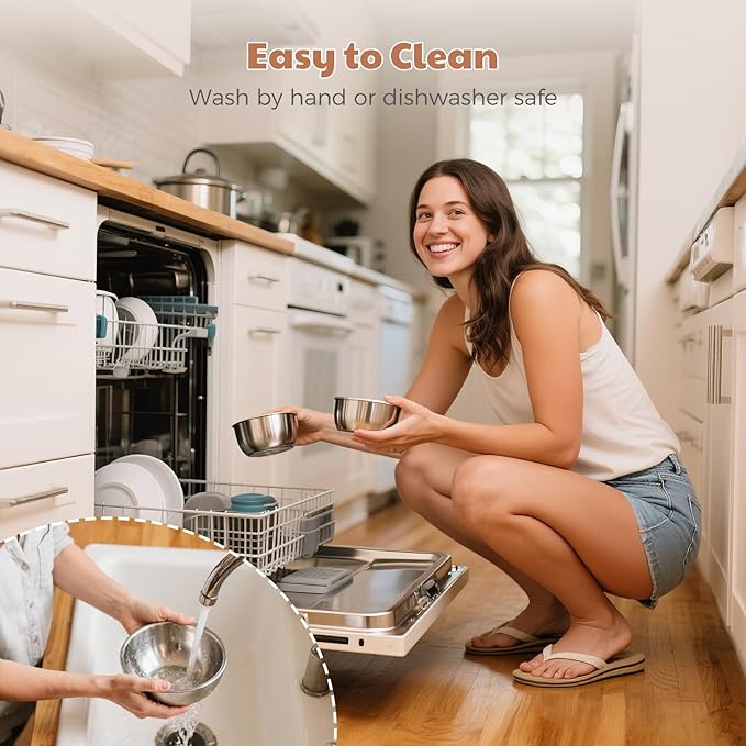 - 【High Quality & Durable Material】Rustproof stainless steel dog bowls are dishwasher safe and easy to clean. Simply remove the small dog food bowls from the base when cleaning. Keep your pet's diet safe with the long-lasting, like-new texture of the material