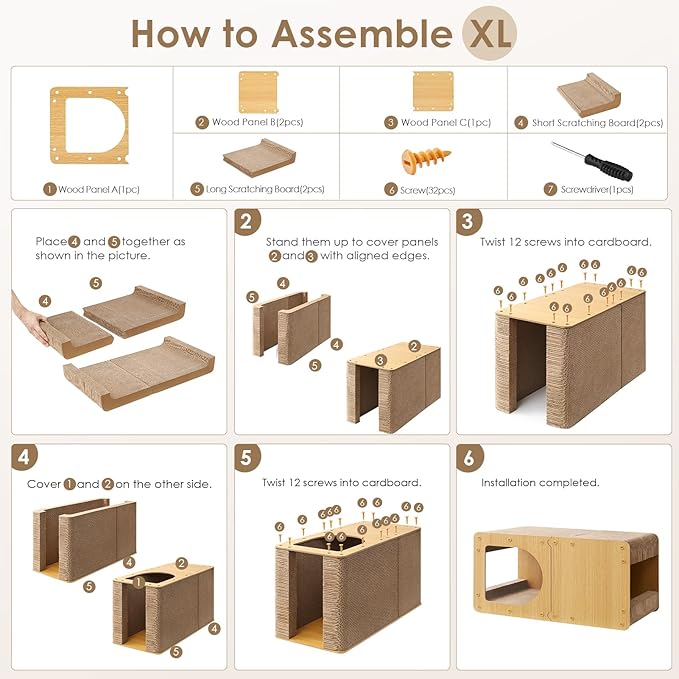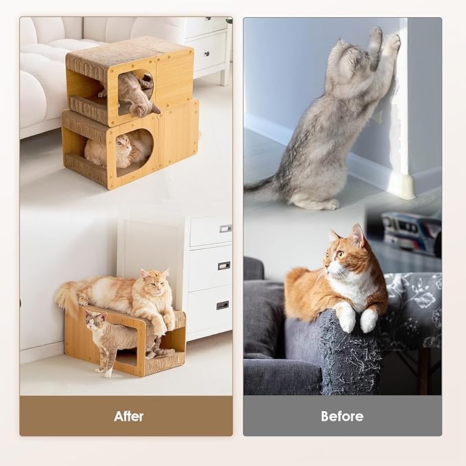 - 😺EASY INSTALLATION: Our cardboard cat house adopts a simple installation method and comes with instructions and necessary tools. The cat scratchers for indoor cats also provide an installation video so that you can install it quickly and easily.