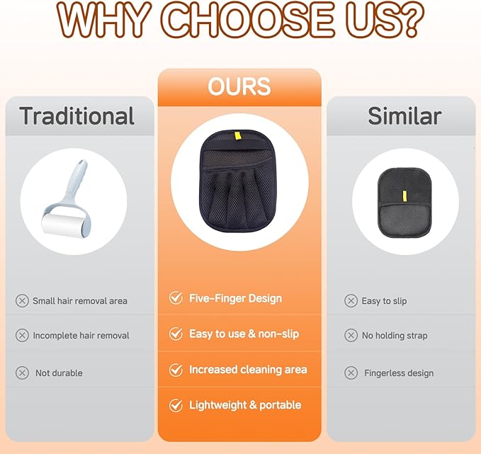 - 【Superior Electrostatic Hair Removal】 The glove's electrostatic charge acts like a magnet, actively attracting and clinging to loose cat hair, lint, and dust embedded deep within fabric fibers. It effortlessly lifts hair from sofas, chairs, bedding, cushions, clothing, car seats, and drapes,even from tricky crevices and textured fabrics where traditional tools struggle.