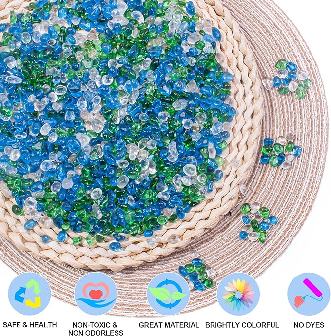 - Features: The glass gemstone is like river gravels, no dye or other methods of artificial coloring is used, never faded. Smooth edges no harm to animals and plants, you can rest assured that using. NB the glass pebbles are 0.93LB Heavy Enough BUT SMALL BAG