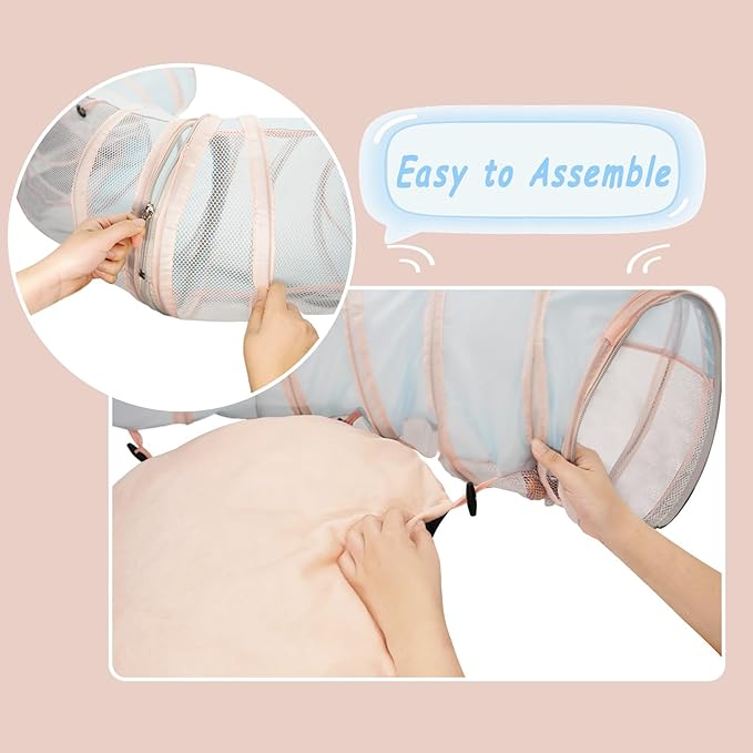 - Worried it might be too small? Don’t be! With a 10-inch diameter tunnel and a 15-inch mat, this product is perfect for pets under 30 pounds. It offers plenty of space for cats of all sizes to play and rest. Additionally, the product is foldable, and with just two simple steps, it can be easily set up or stored, saving space when not in use.