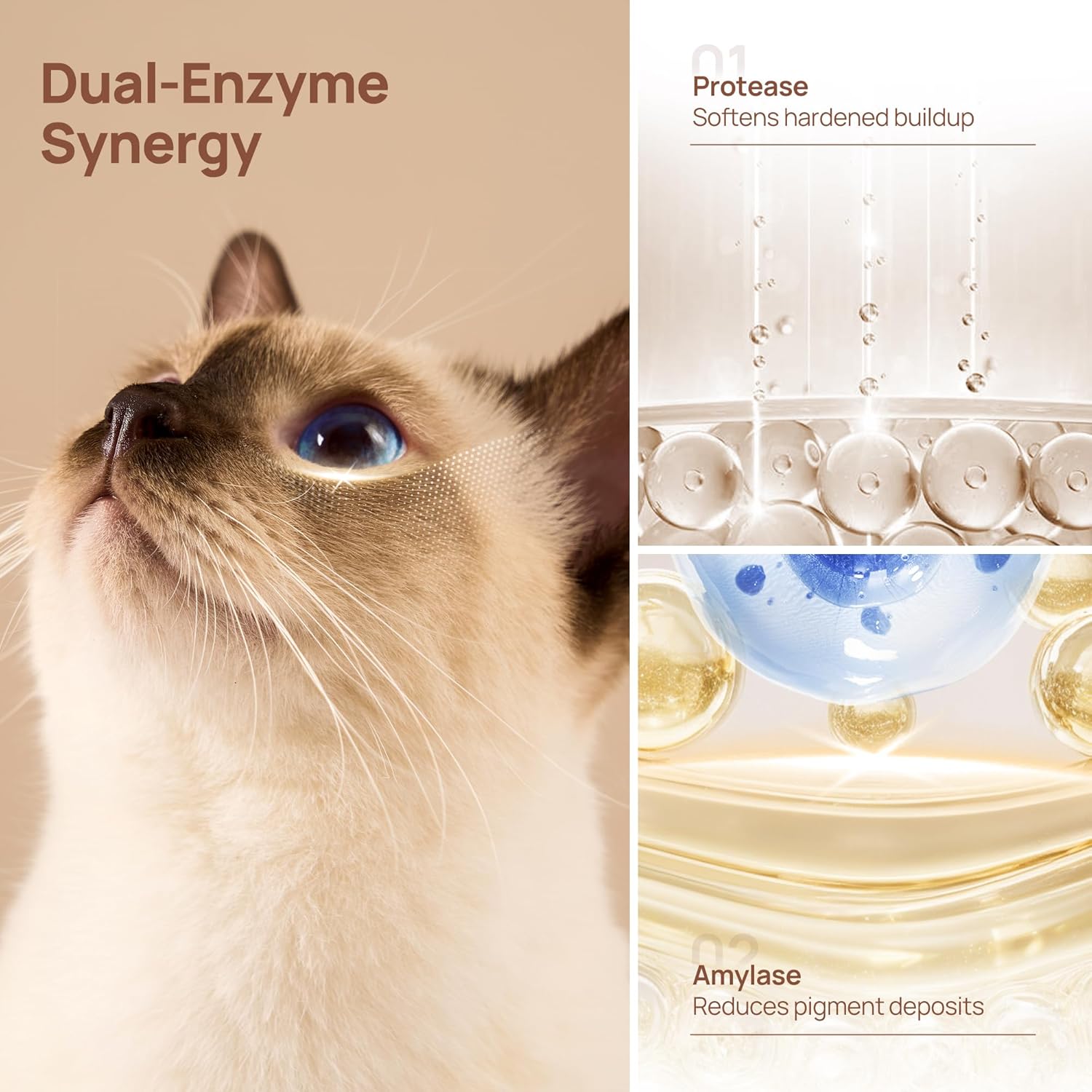 - PRO-Grade Dual-Enzyme Formula Targets the Source of Stains - We understand tear stains can be persistent. Unlike other surface-level wipes, our professional formula features a dual-enzyme system (Protease & Amylase) that works to dissolve the buildup that causes discoloration, aiding in the gradual reduction of stains with consistent use.(Enzyme may have a natural scent, but is non-irritating). It's a proactive step for maintaining cleaner, healthier-looking eyes as part of your dog's daily care