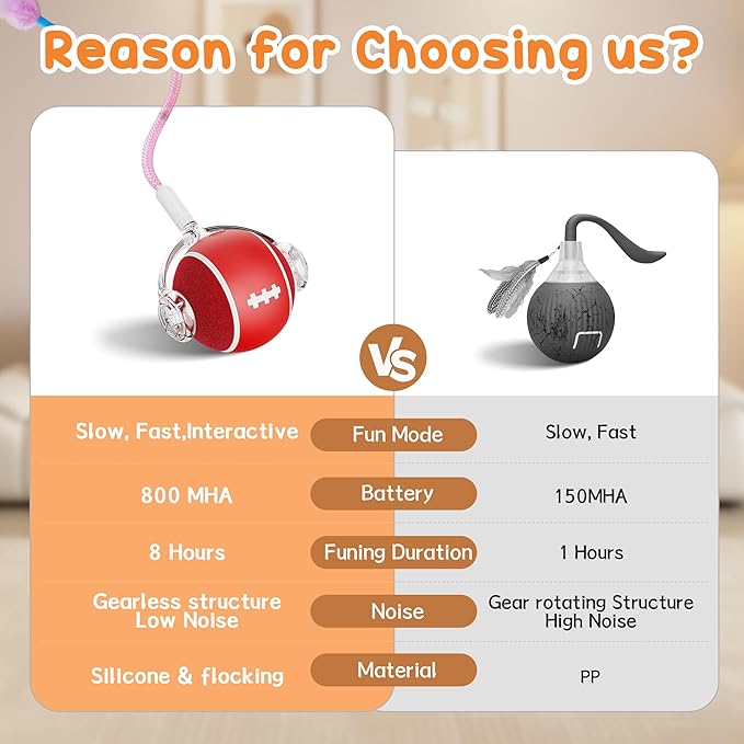 - Ultra-Low Noise:This moving cat toy combines premium silicone and flocking materials, plus a gearless internal structure, significantly reducing noise during rolling and collisions. Perfect for quiet indoor play, it won’t disturb your home while keeping cats engaged—an ideal interactive cat toy for multi-cat households and timid kittens.
