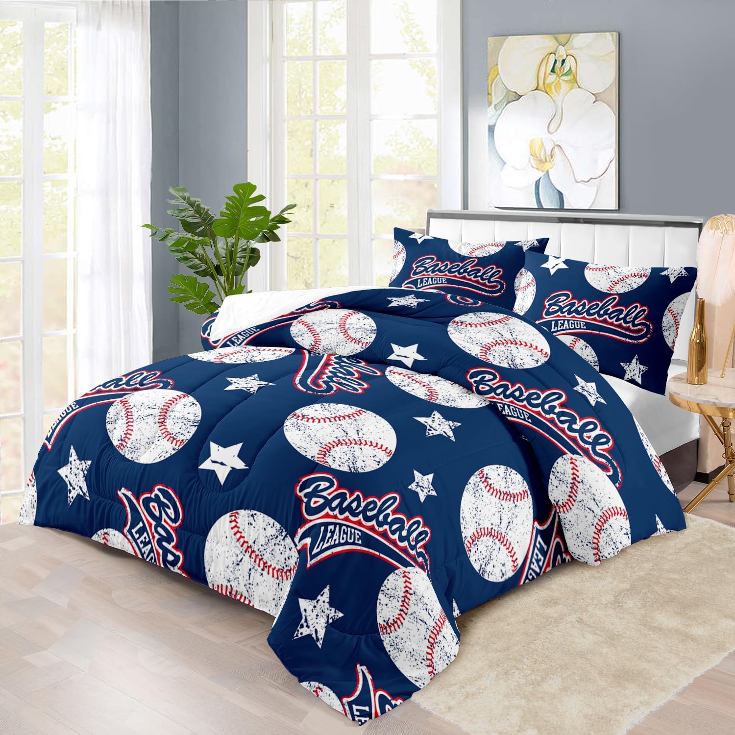 Baseball Comforter Set Full,Sports Bedding Sets for Boys,Blue Sports Comforter Full Bedroom Decor,Baseball Bedding Teen for All Seasons,Blue Quilt Kids Bedroom Decor