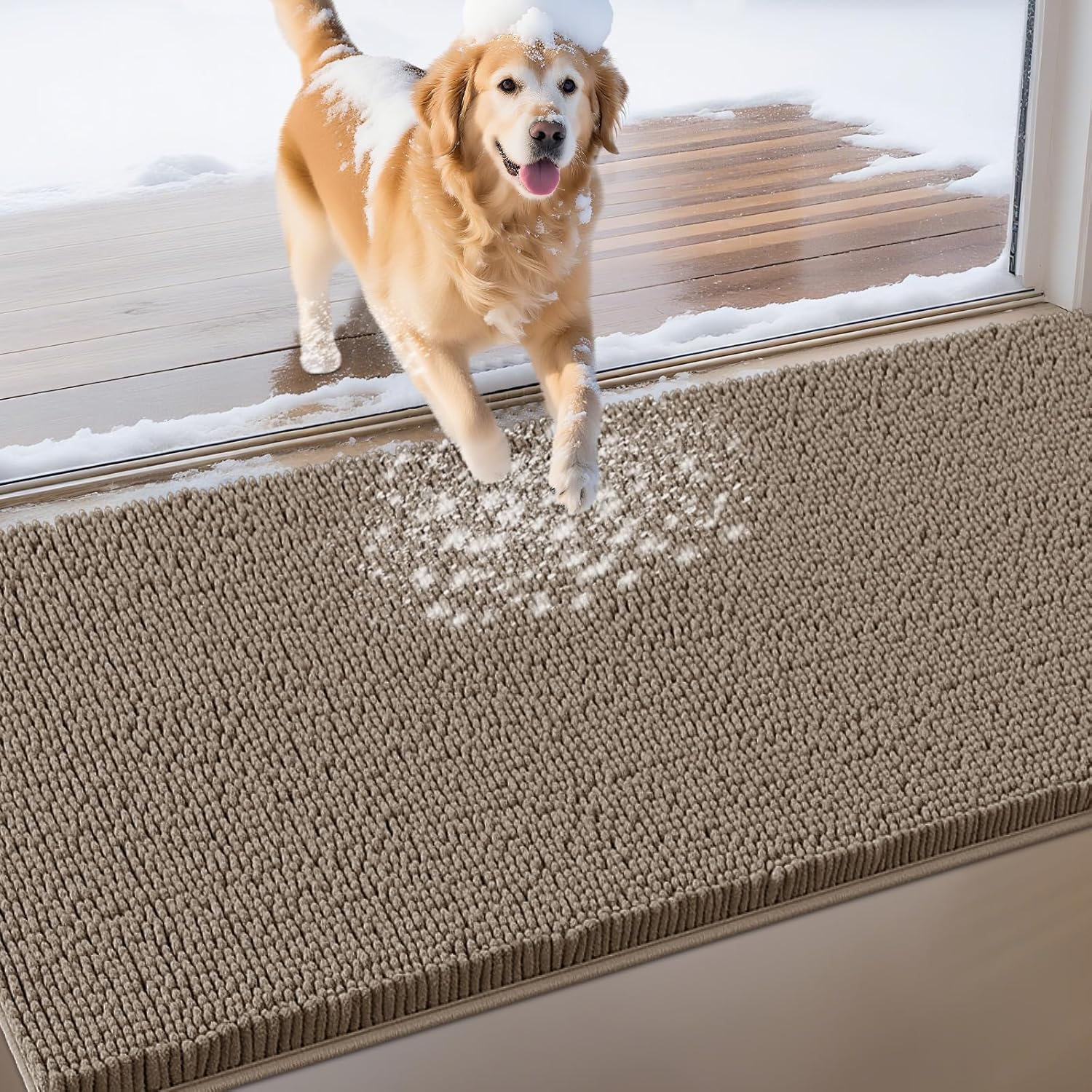 IM HOME Extra Large Dog Door Mats for Muddy Paws, Chenille Absorbent Dog Mats, Non Slip Heavy Mud Mat for Dogs, Soft Pet Mat for Entryway, Mud Paws, Inside Floor,71" x 25", Beige