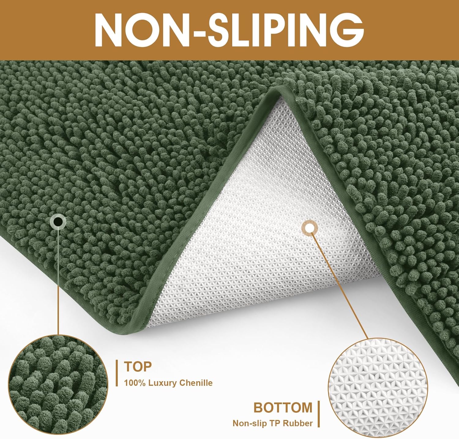 Dog Door Mats for Muddy Paws, Chenille Absorbent Dog Mats, Non Slip Heavy Mud Mat for Dogs, Soft Pet Mat for Entryway, Mud Paws, Inside Floor,48" x 38", Olive