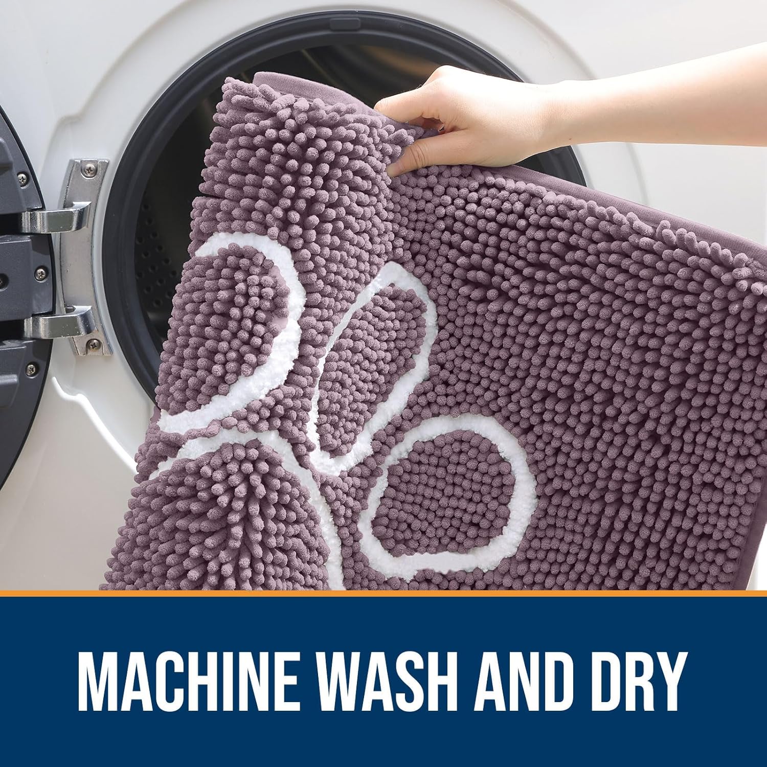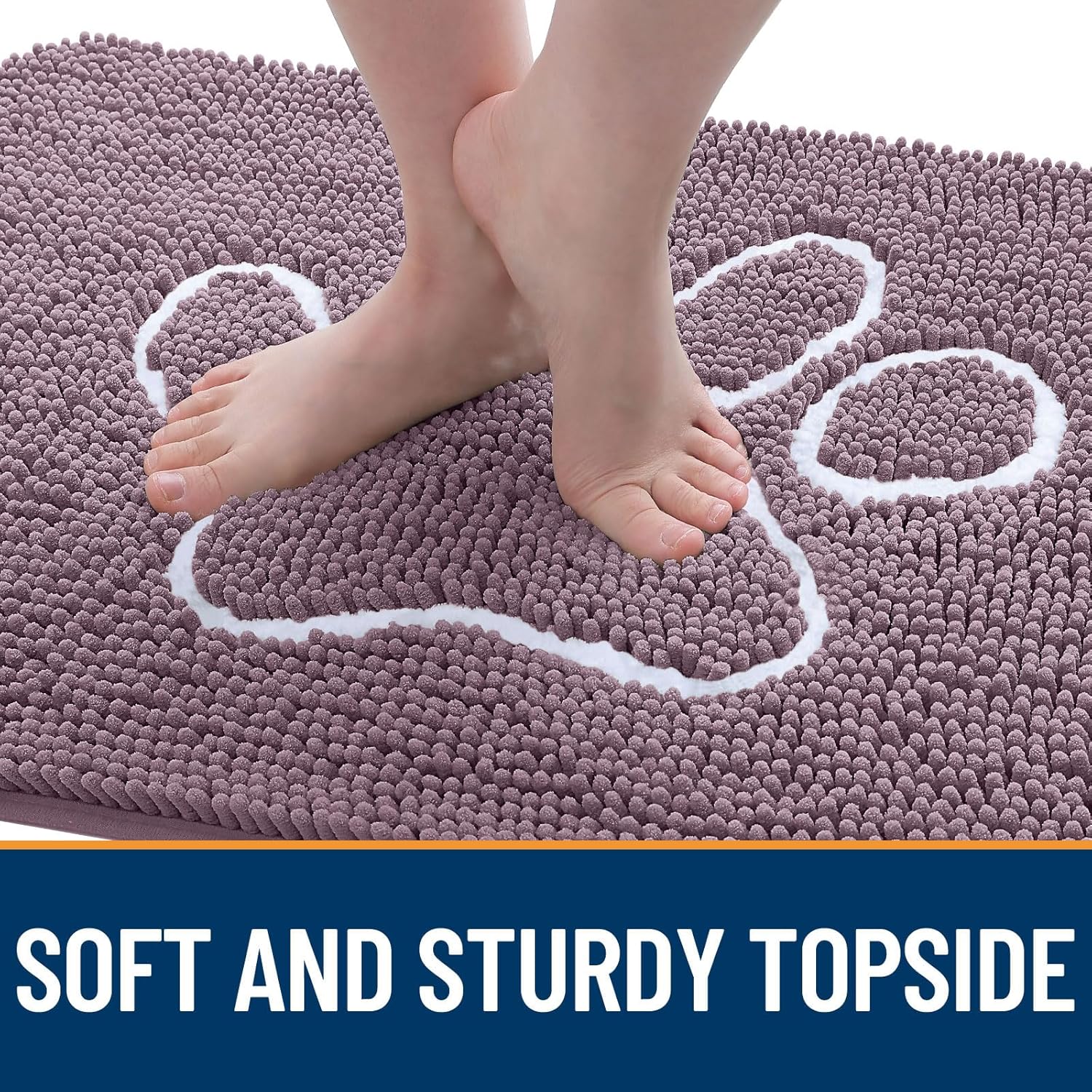 OLANLY Door Mat for Muddy Dog Paws 36x24, Absorbent Chenille Mud Doormat with Paw Print Design, Non-Slip Washable Doormat for Indoor Entryway, Quick-Dry Pet Bed Mats for Dirty Dogs, Deep Plum