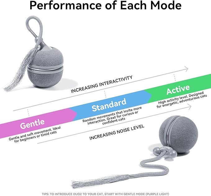 - Customizable Play for Every Mood: Boredom? Not a chance. With three interactive modes and dual interchangeable shells, this automatic cat toy adapts to your cat’s unique preferences, eliminating boredom for fearless kittens, picky adults, or multi-cat crews. The rechargeable cat toy design ensures non-stop fun without frequent battery changes.