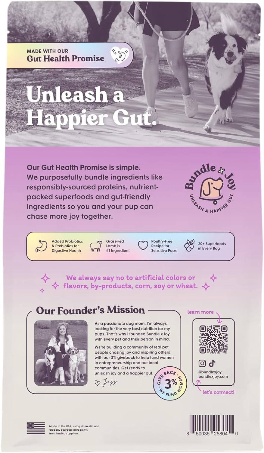 Bundle x Joy Grass-Fed Lamb Dog Food 12lb Bag with Added Probioitics, Poultry-Free, Digestive Gut Health, No Chicken or Beef, Made in USA