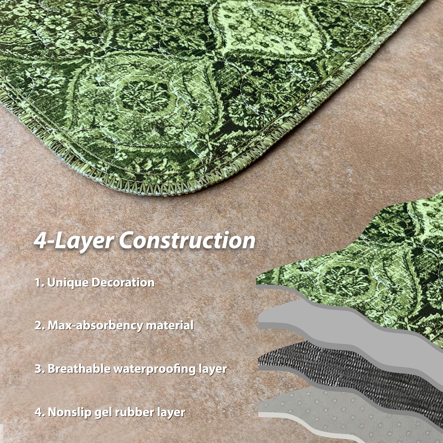 nunubaby 4PACK Washable Pee Pads for Dogs, Stylish, Non-Slip and Leak-Proof Pee Pads. Reusable Potty Pads for Dogs for Crates and Floors.(Green/Multi, 18" x24")