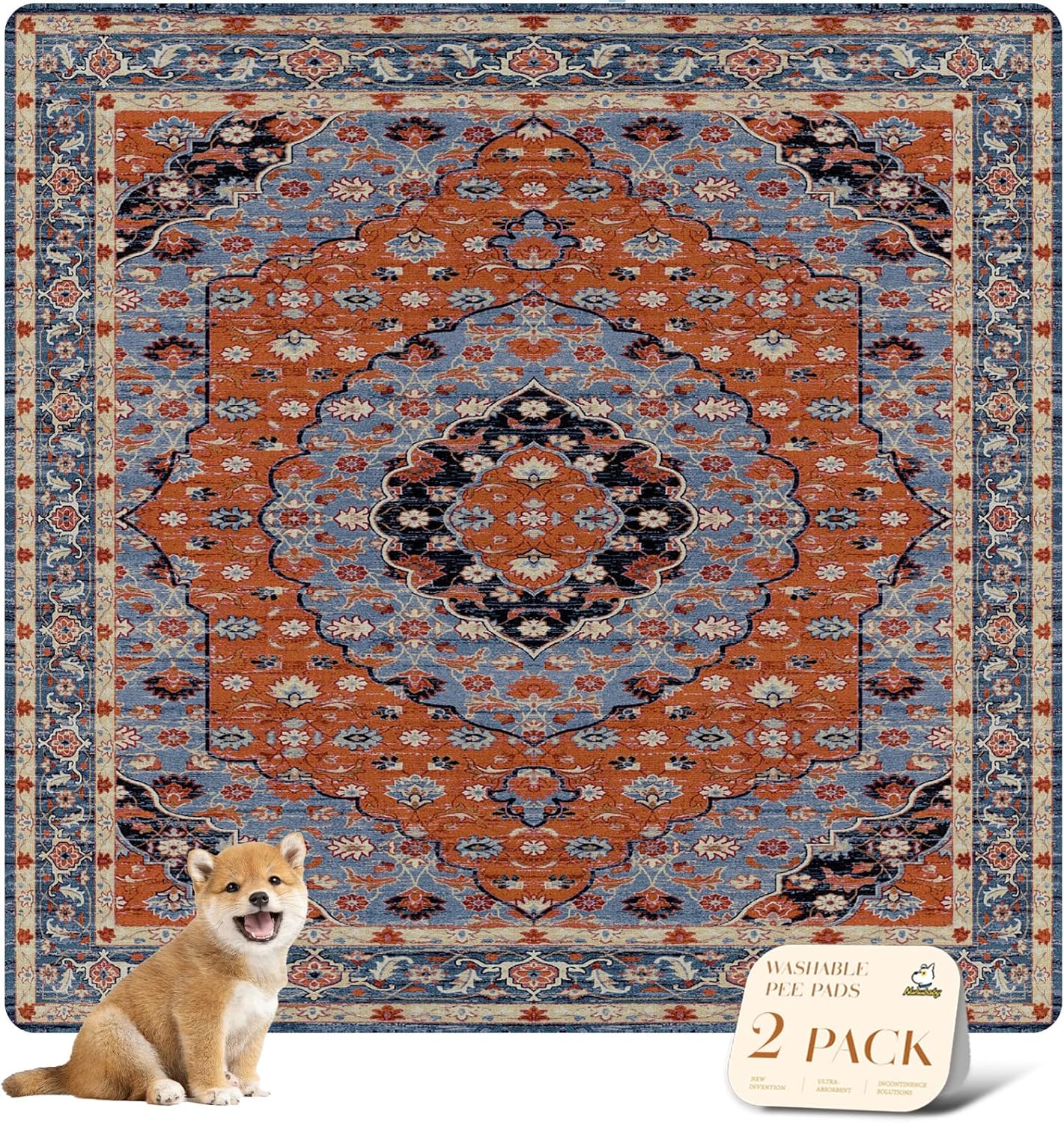 nunubaby 2PACK Washable Pee Pads for Dogs, Stylish, Non-Slip and Leak-Proof Pee Pads. Reusable Potty Pads for Dogs for Crates and Floors.(Red/Floral, 72" x72")