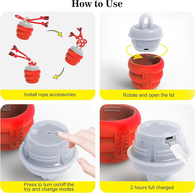 - USB rechargeable dog toys: Simple charge the puppy toys ball via the Type-C cable, no need to changing battery often. When you're out, this electric dog toy will keep them company, the dog can entertain itself and reduce boredom