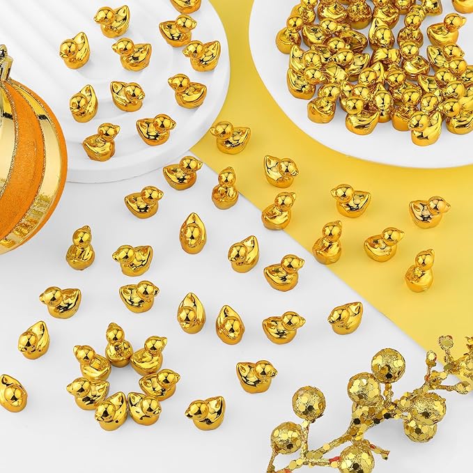 - 80Pcs Mini Golden Duck Statue Golden Duck Figurines Micro Garden Landscape Dollhouse Cake Decoration Potted Plants DIY Craft Charms for Party Gift