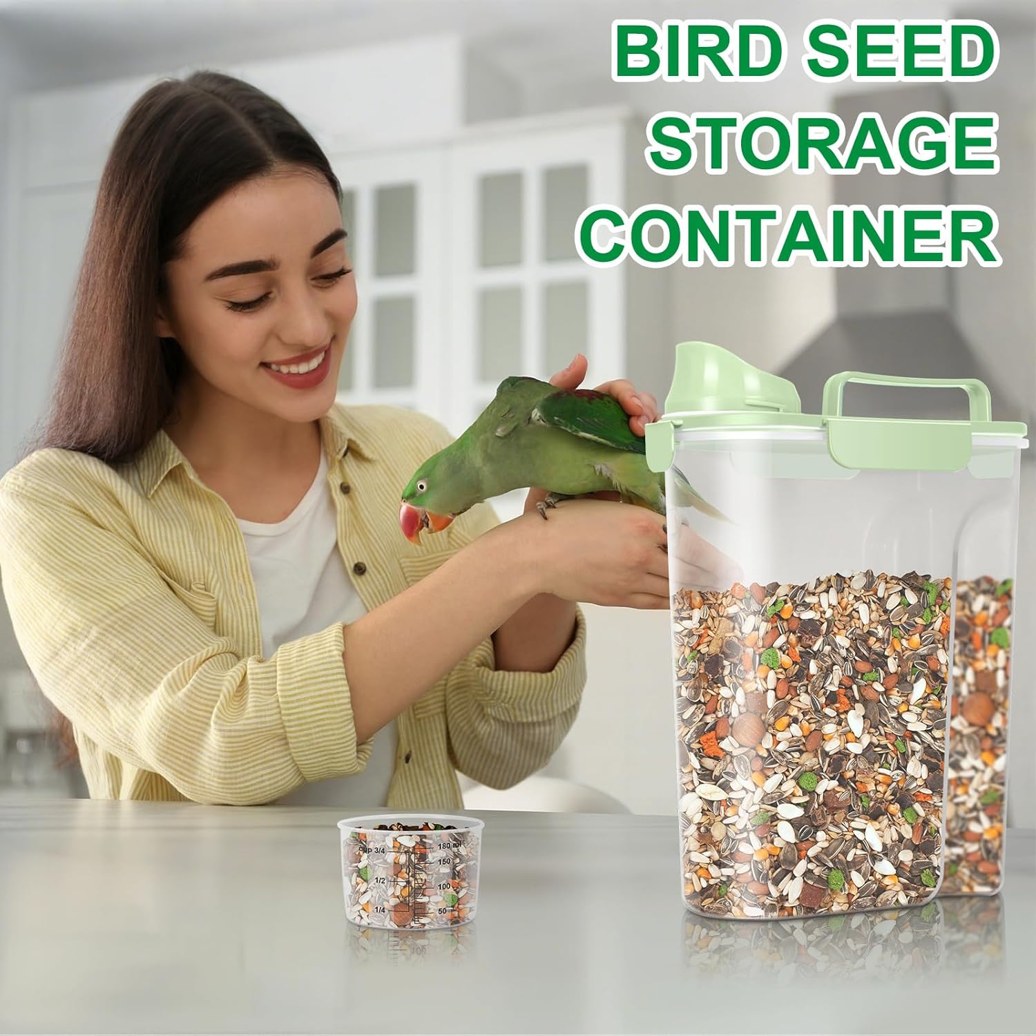 TBMax Cat Dog Food Storage Container 5 to 7 lbs, Secondary Pet Food Storage Beyond a Large Dog Food Bin for Daily Use, Easy-Pouring Bird Seed Dispenser, Travel Kibble Container for Outdoor-Light Green