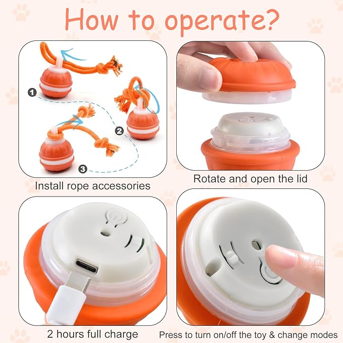 - USB Rechargeable Dog Toys for More Fun: Simple charge the cognitive dog toys via the Type-C cable, no need to changing battery often that can be fully charged in just 30 minutes, providing your pet with extended playtime so it can always jump into the fun. The set includes: smart dog ball+ 2*long rope + 1* Type-C USB cord+user maual. enrichment toys for dogs, interactive dog toy, anti boredom dog toys, durable dog toys