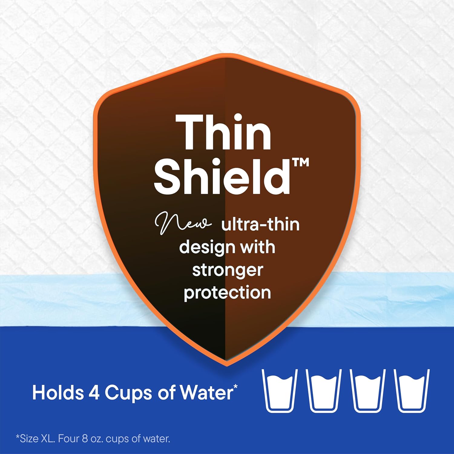 - 5-LAYER LEAK-PROOF PROTECTION — Advanced Thin Shield design includes: (1) Non-woven top sheet for quick-dry comfort. (2) Absorbent tissue that pulls liquid in fast. (3) Polymer core for heavy-duty absorption. (4) Soft fluff layer for even distribution. (5) Waterproof backing that keeps floors and crates completely dry.