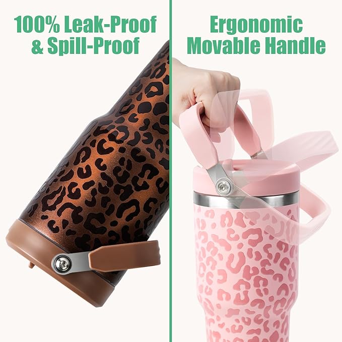 30oz Tumbler with Handle and Straw, Vacuum Insulated Tumblers with Flip Straw and Top Handle, Reusable Insulated Cup for Home, Outdoors, Leakproof, Fits in Cup Holder, Cold for 30 Hours