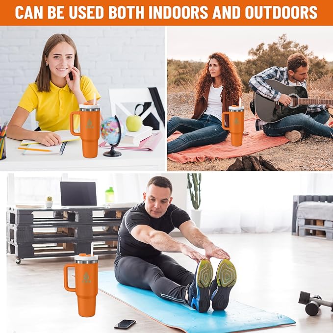 40oz stainless Steel Insulated Tumbler with Handle, lid and straw for cold water, Iced tea, or coffee - 100% Leak-Proof - Cupholder Friendly Travel Mug- Gifts for Women Men Him Her (Orange)